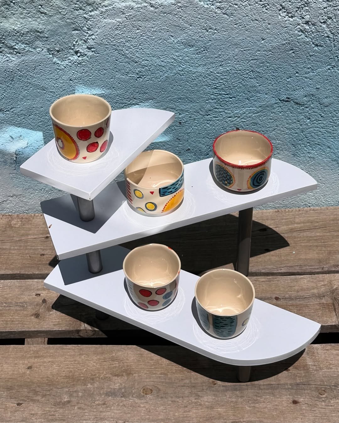 Descubre la alegría y el color de nuestra colección de cerámicas únicas. Cada pieza, meticulosamente elaborada a mano, es un lienzo de creatividad con patrones vibrantes y toques artísticos que transformarán cualquier espacio. Perfectas para dar vida a tus plantas o como objetos decorativos, nuestras macetas no son solo recipientes, son expresiones de arte que cuentan una historia.